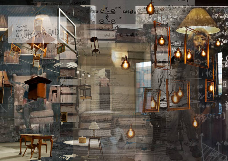 Een omlijsting waar de stemmen in Jannemans hoofd kunnen meekijken en Janneman kunnen aansturen/beïnvloeden en adviseren. Dit door middel van het verplaatsen en opruimen van de ruimte. Dit proces wordt in het verloop van het verhaal voortgezet en is dus heel de tijd zichtbaar. Hier zal ik gebruikmaken van ‘het spelen met verwachting’ om verwondering op te roepen. Want wanneer er iets gebeurd dat je niet verwacht, roept dat verwondering op.