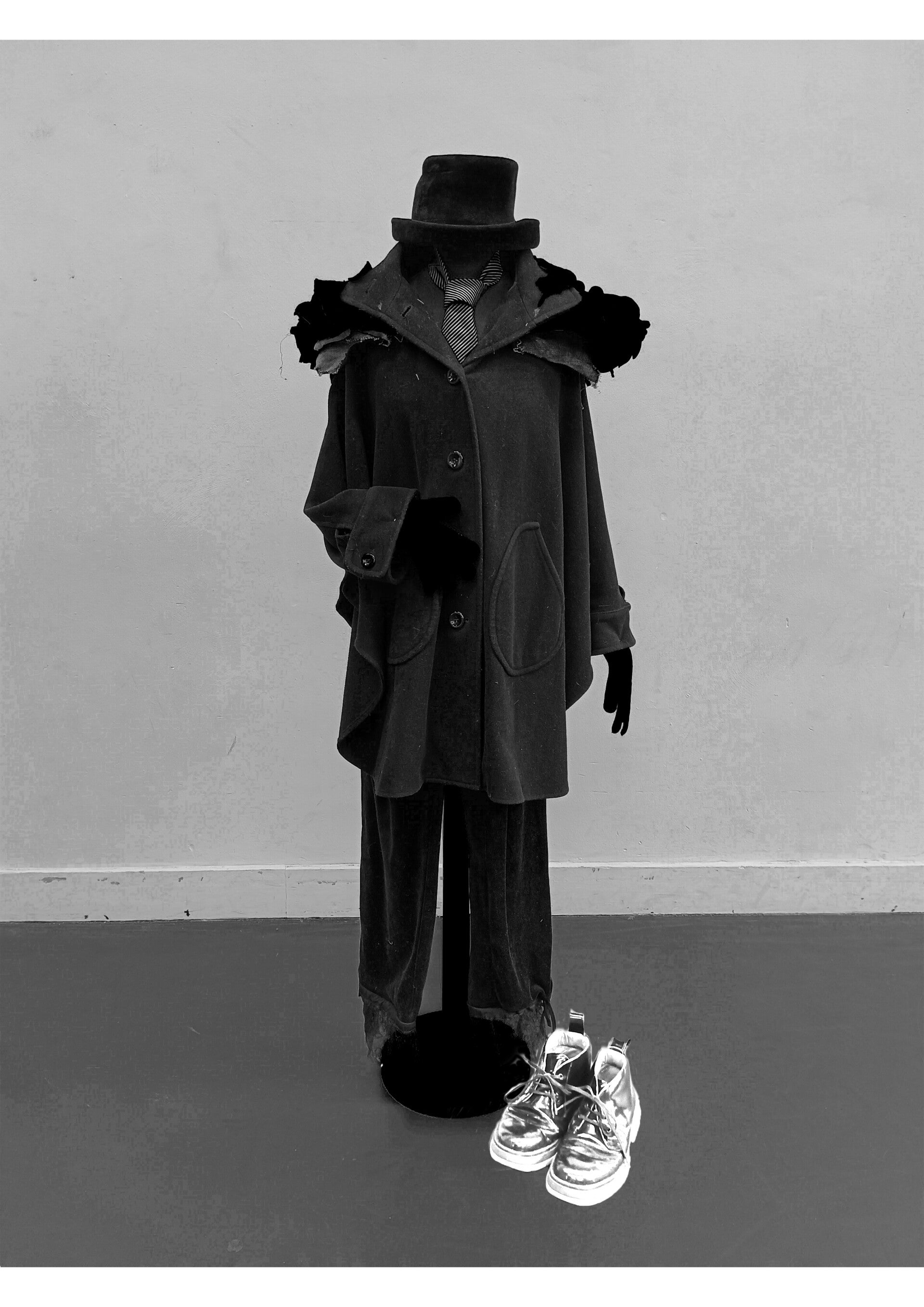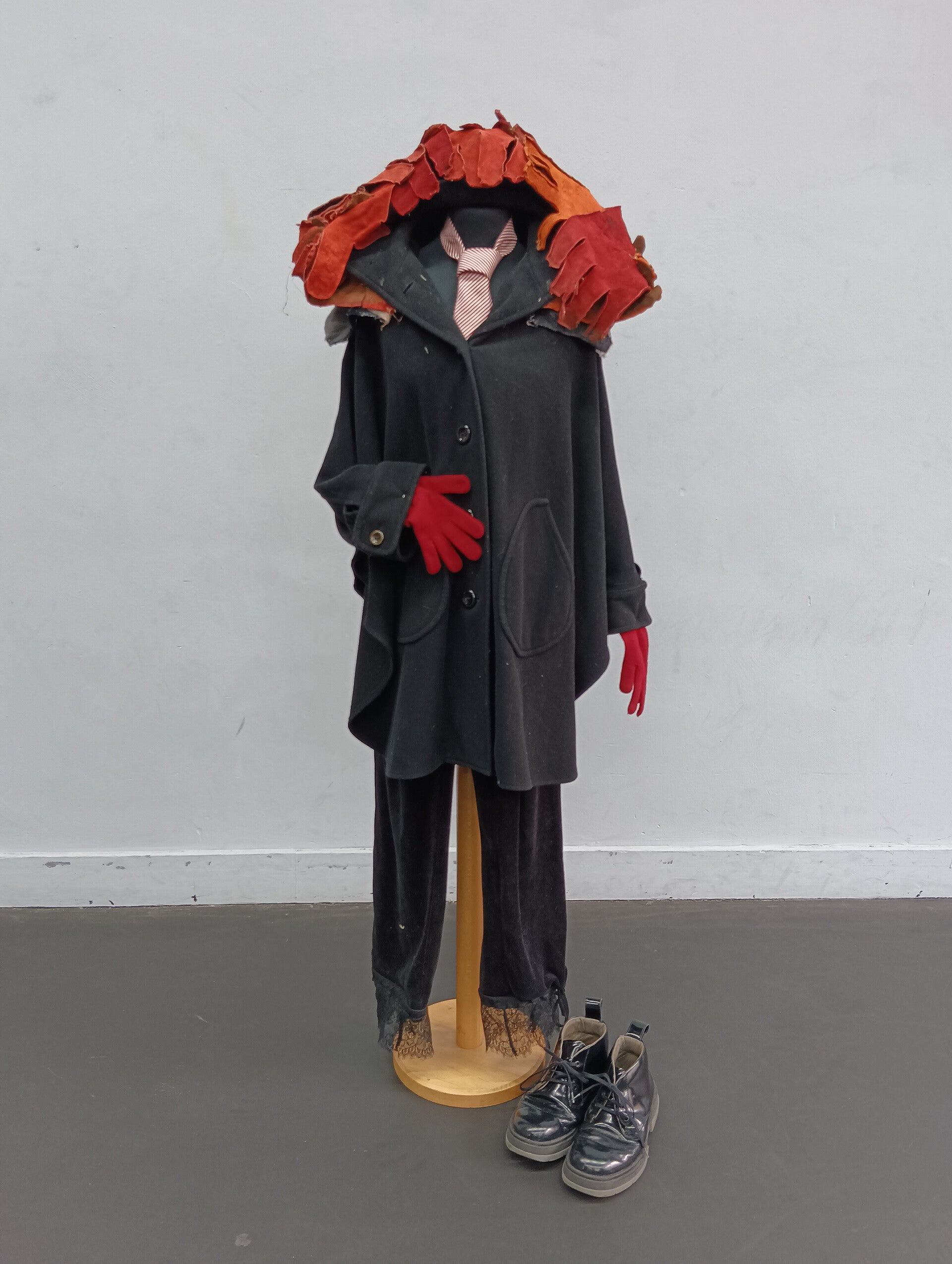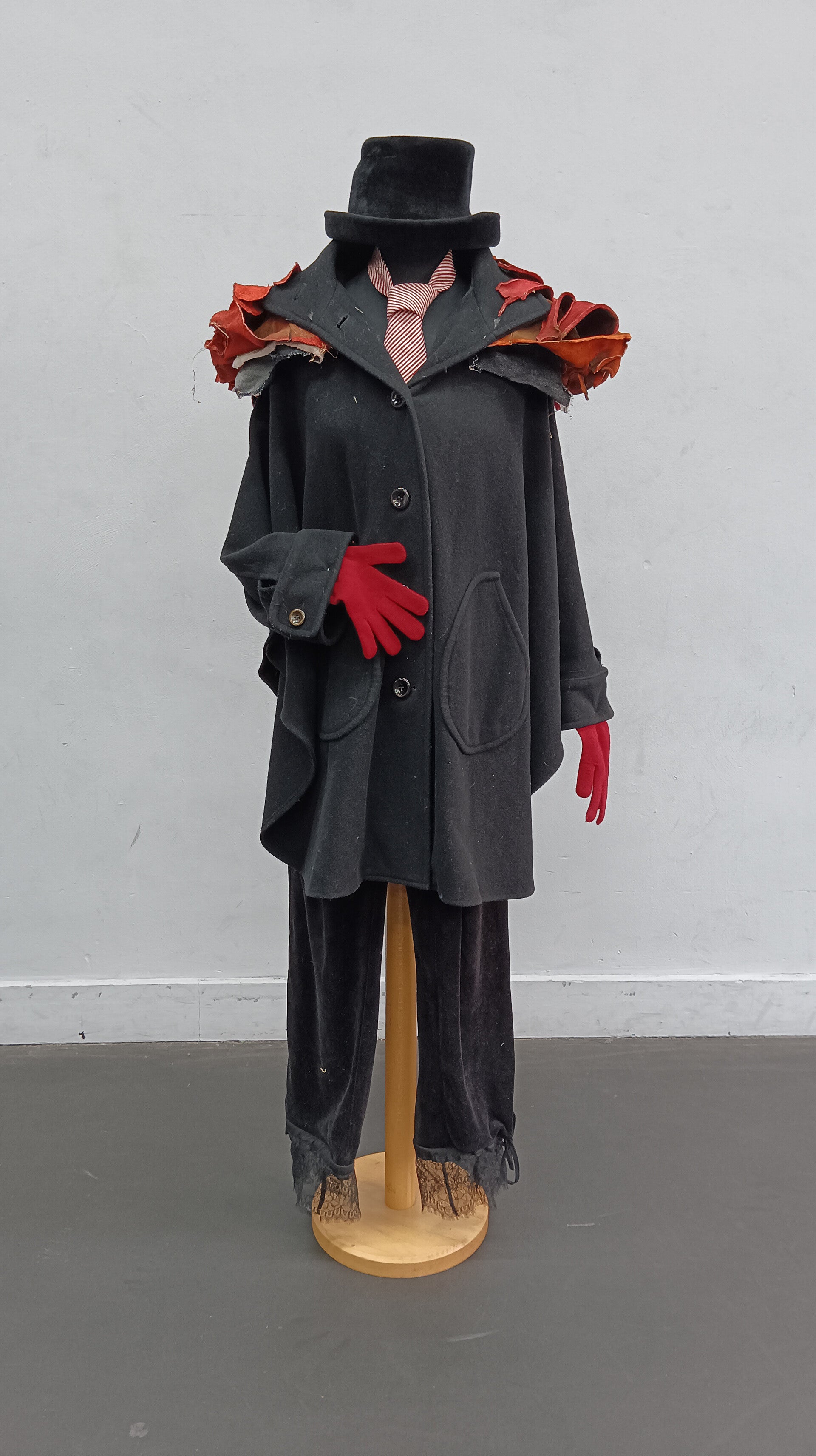 is voor mij de relativerende stem, maar ook de stem van eenzaamheid. Hij denkt als niemand anders maar is wel ongelofelijk lief en meelevend. Daarom word zijn witte kostuumonderdeel handschoenen. Hij is de knuffel, de omarmende en zorgende stem.