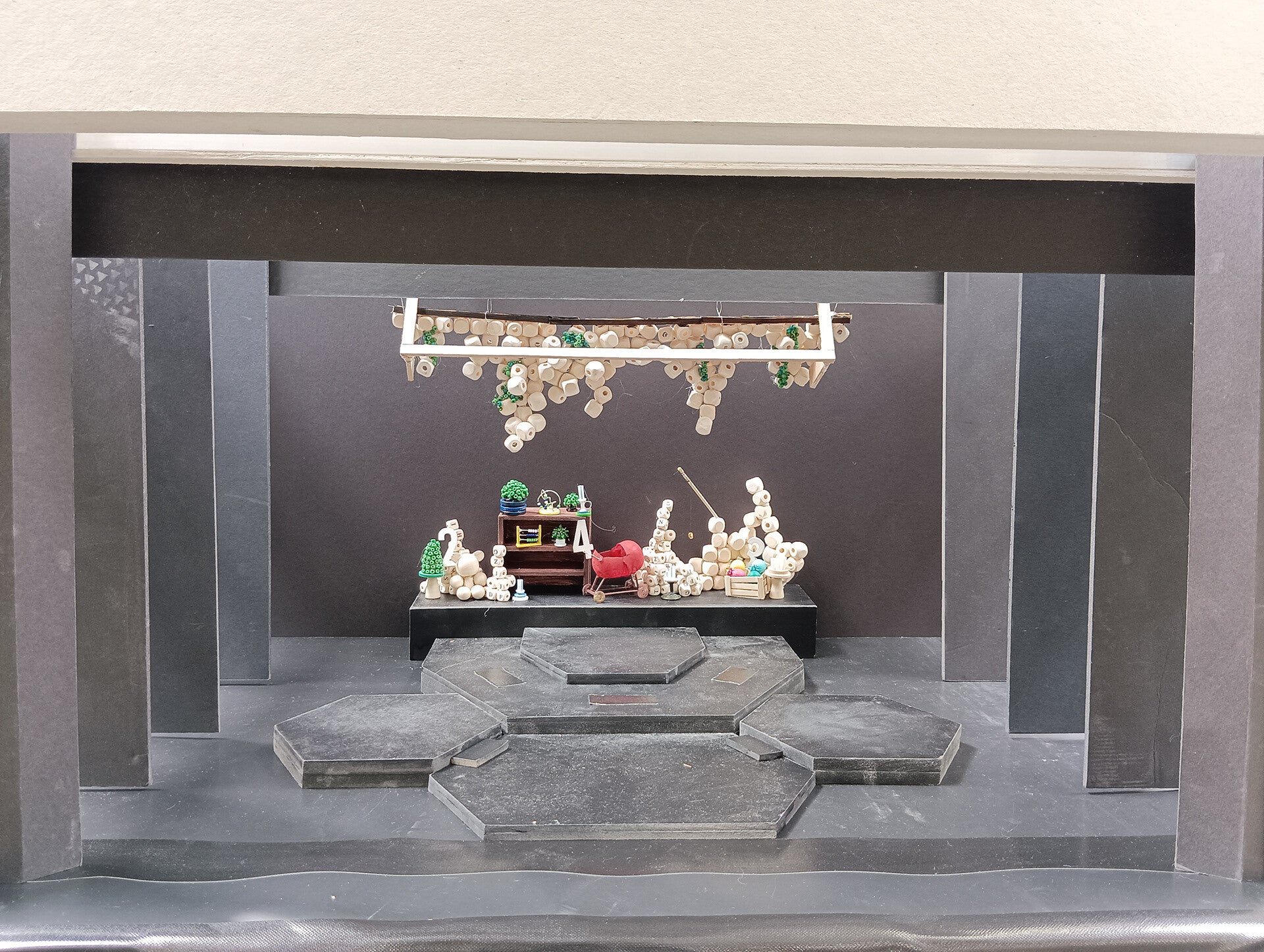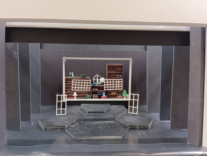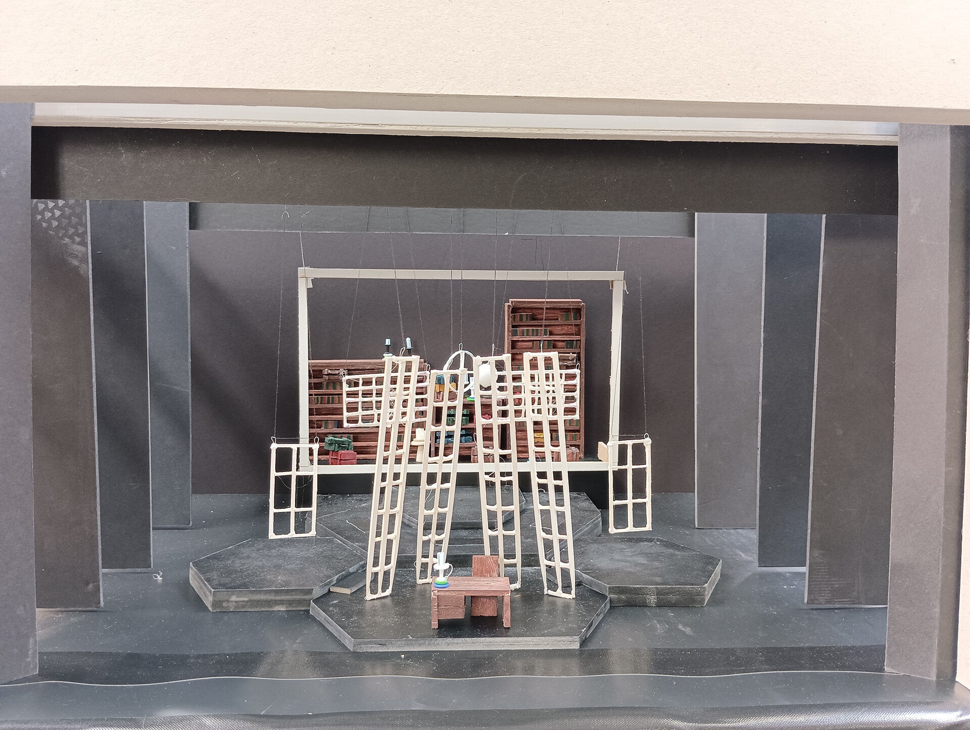 Ik heb bij dit decor elementen ontworpen waarmee handelingen uitgevoerd kunnen worden, iets wat in gesprek kan worden ontworpen in samenspraak met de regisseur.