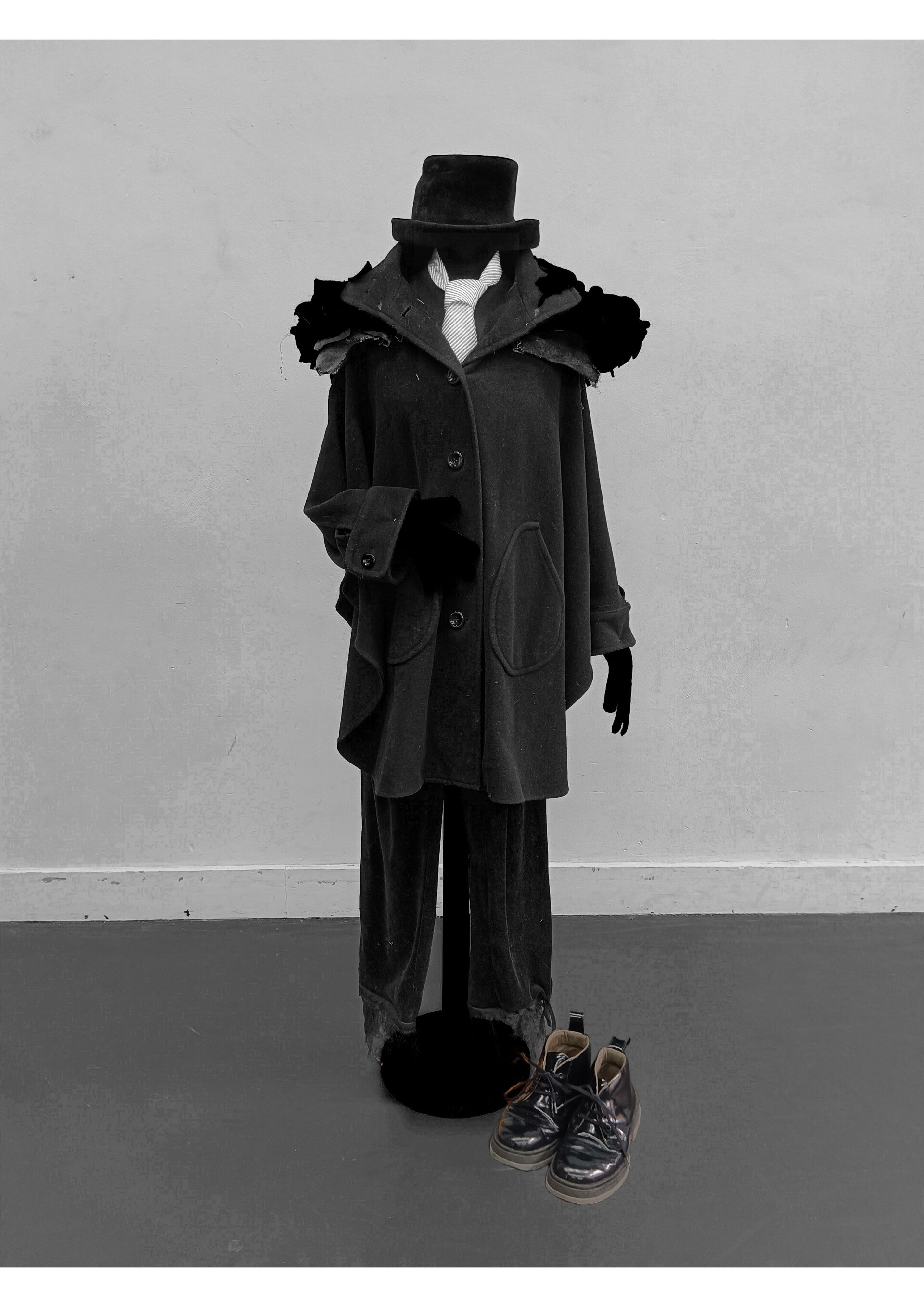 is de onderdrukte stem, narigheid en negatief. Het leven is zwaar, alles is zwaar, het drukt enorm op hem en op Janneman. Daarom is zijn witte kostuumonderdeel de schouders van de jas.